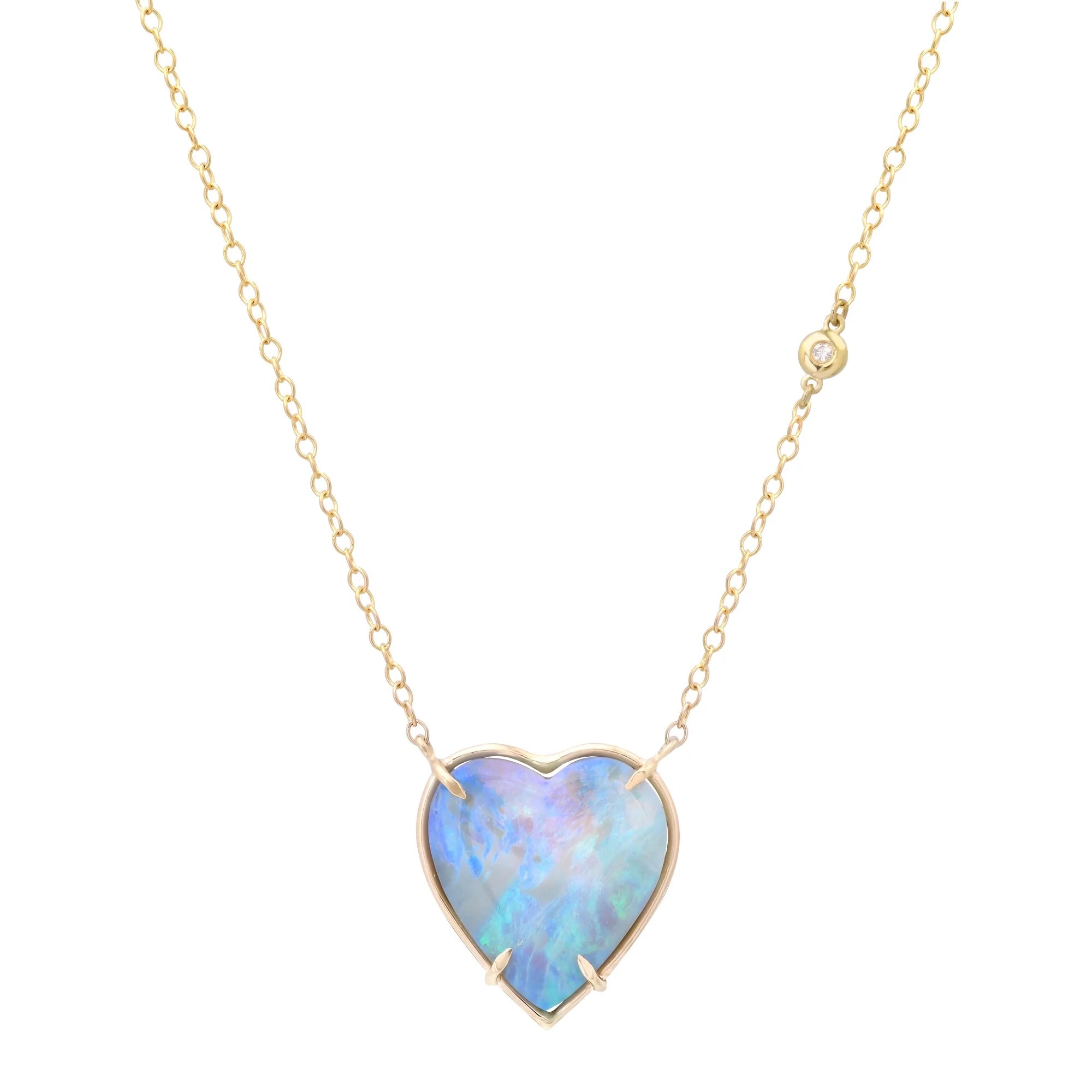 This gorgeous One of a Kind solid Australian Opal necklace has been placed in our classic wire with a Diamond accent along the chain. Opal enhances cosmic consciousness and stimulates originality and creativity. This pendant sits on an 18 inch rolo chain.
