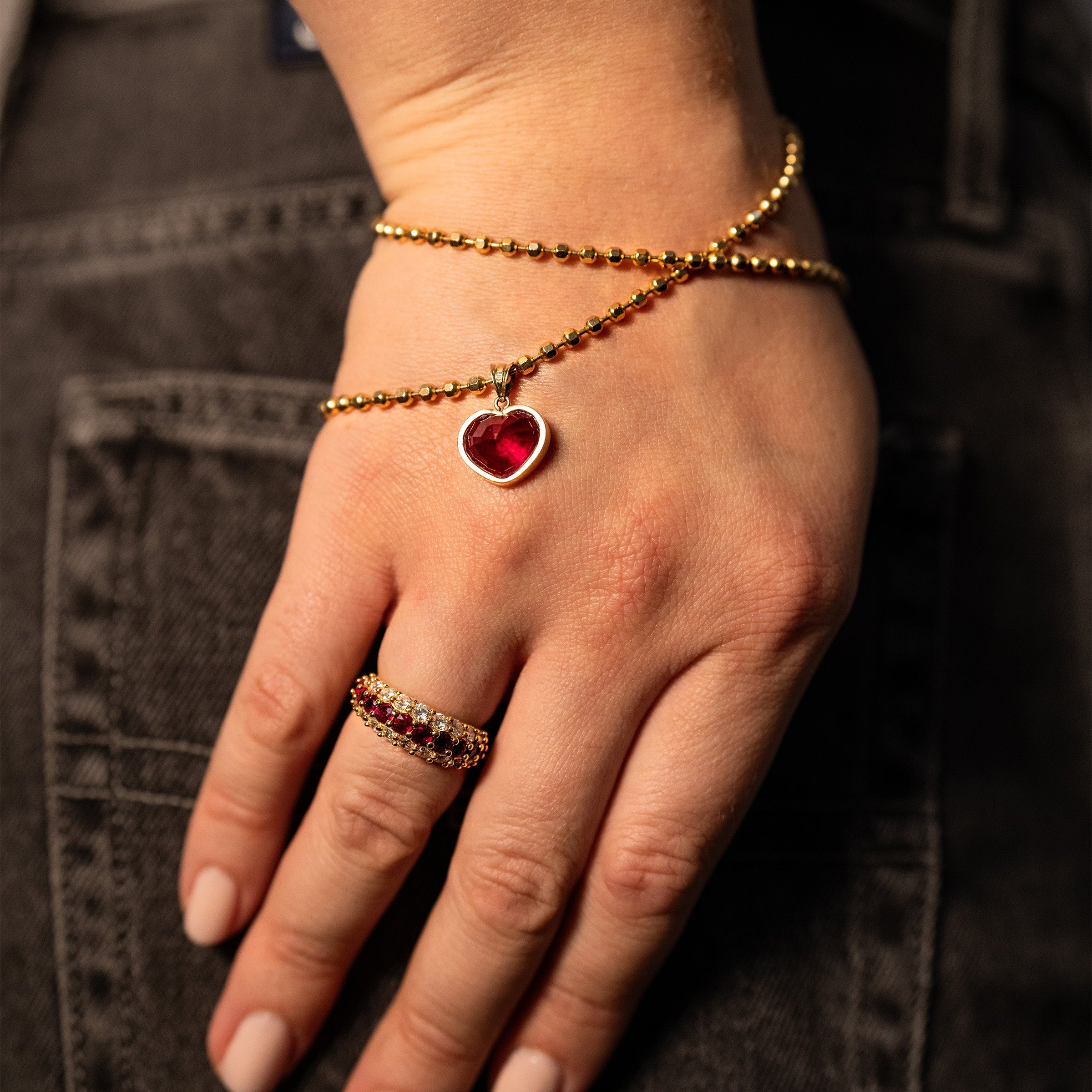 This Roseark Ruby heart charm is the perfect addition to a vintage, 30 inch length chain (picture shown) creating a stunning and unique pendant. Pendant: 15mm Height x 14mm Width. Sold as pendant only.