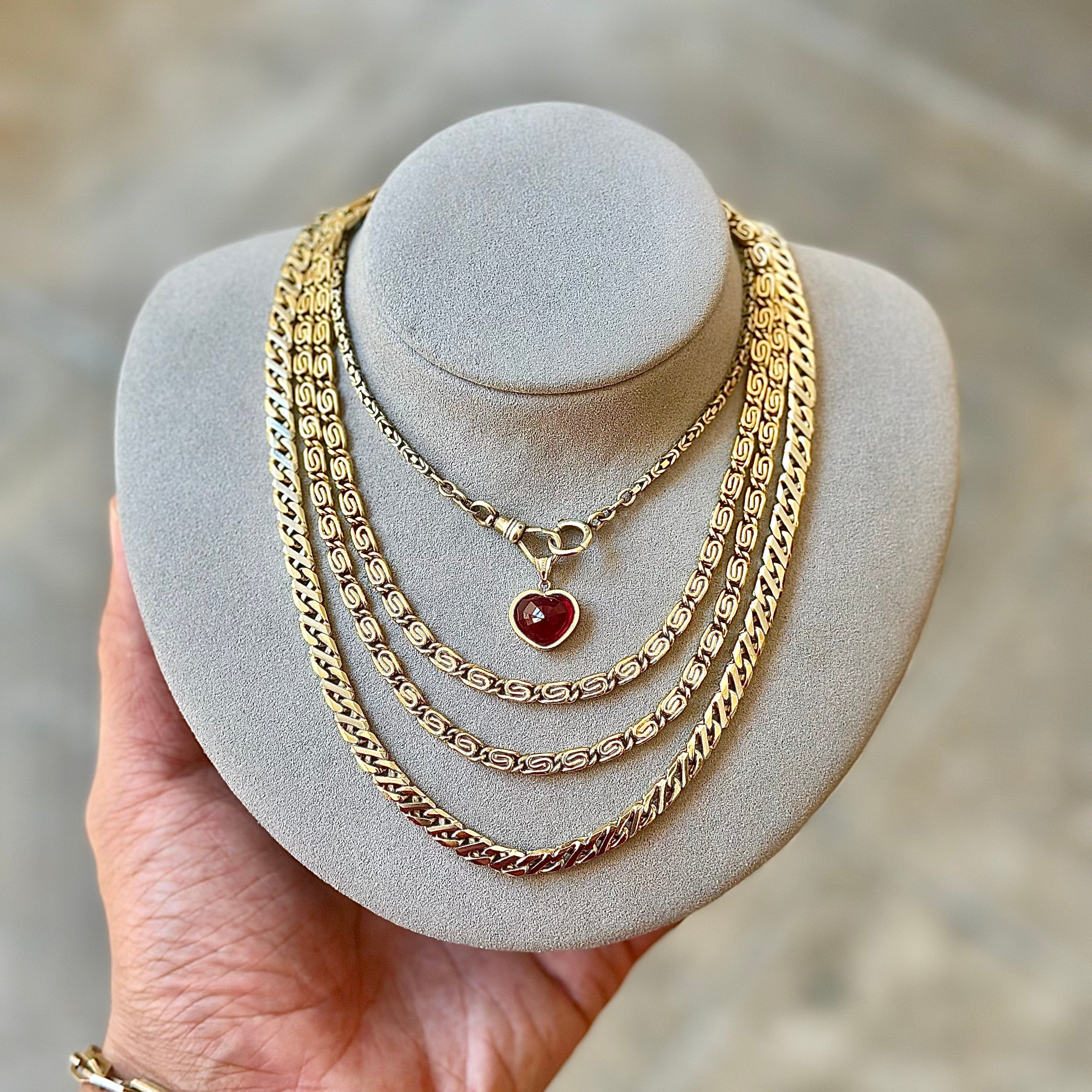 Full decorative "swirl" link necklace. Heavy but easy wear. Set in 18k Gold - 28 inch chain.