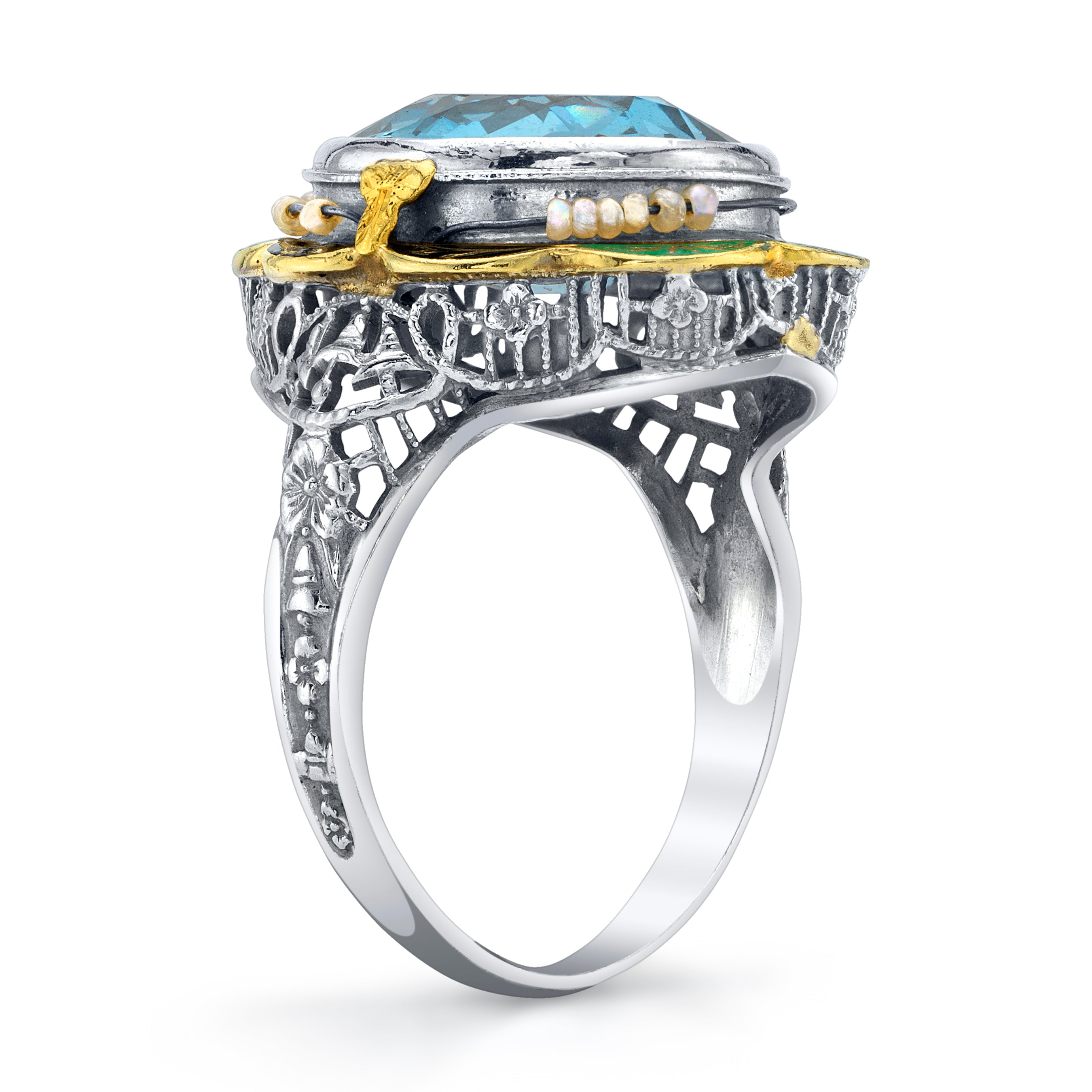 Art Deco, circa 1930s. Vintage ring is set in 14k White gold set with Lab-grown Spinel, at 6.32grams. Available in size 7.5.