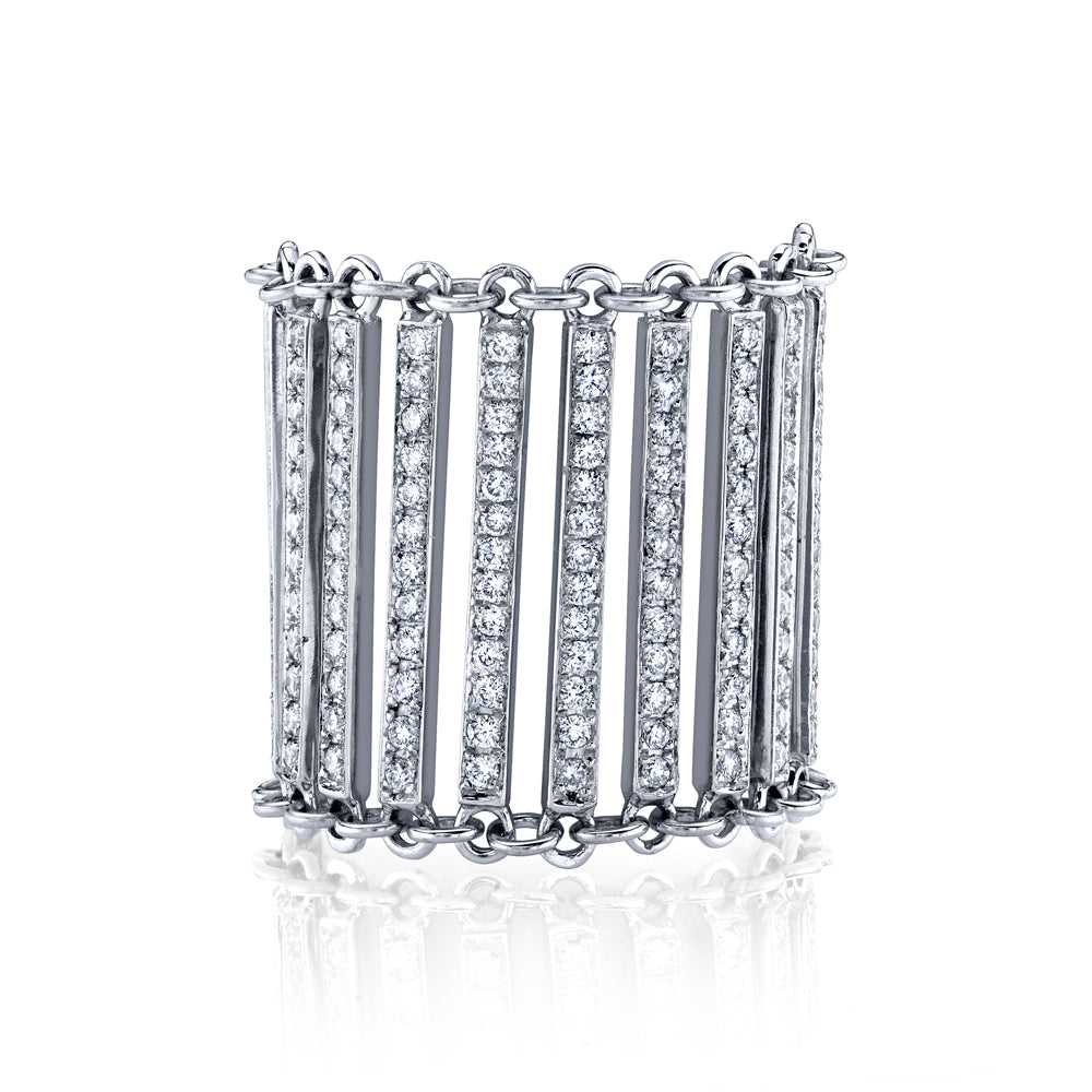 Diamond bars link together to craft this beautiful ring. With 1.89ct white diamonds, this ring is sure to make a statement.
