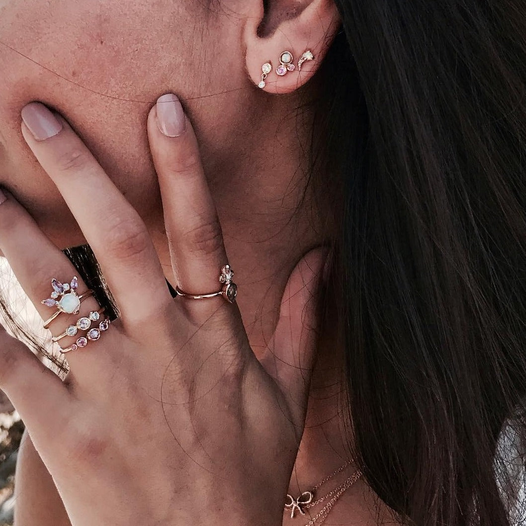 This elegant earring features two stunning diamonds, each expertly bezel set for maximum sparkle. Elevate any outfit with this timeless and sophisticated accessory. 7 Millimeter Height. 2.5 Millimeter Opal Diameter. 1.5 Millimeter Pink Sapphire Diameter.