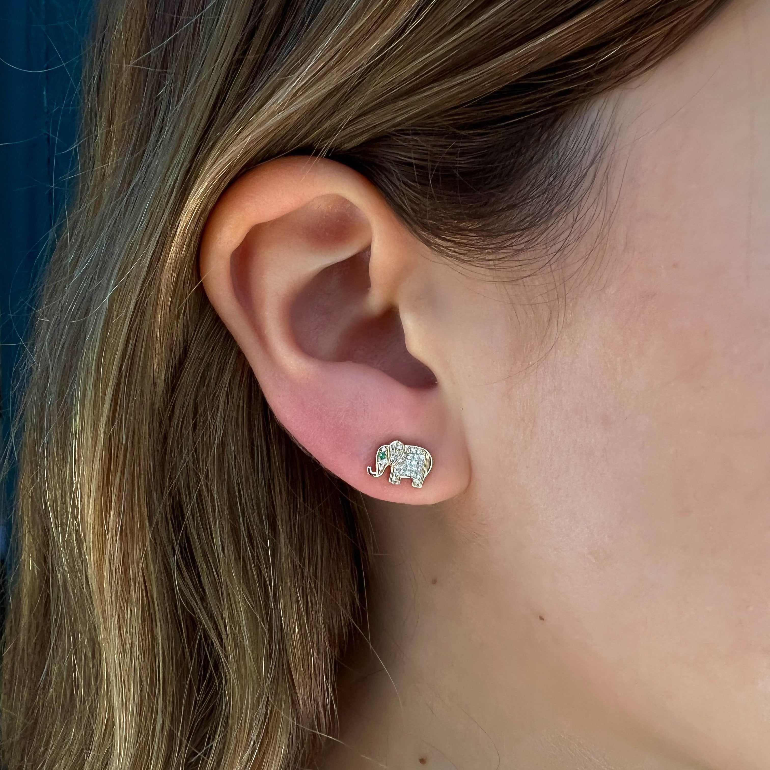 Elephant stud with Diamonds and an Emerald eye on 14K Yellow Gold.