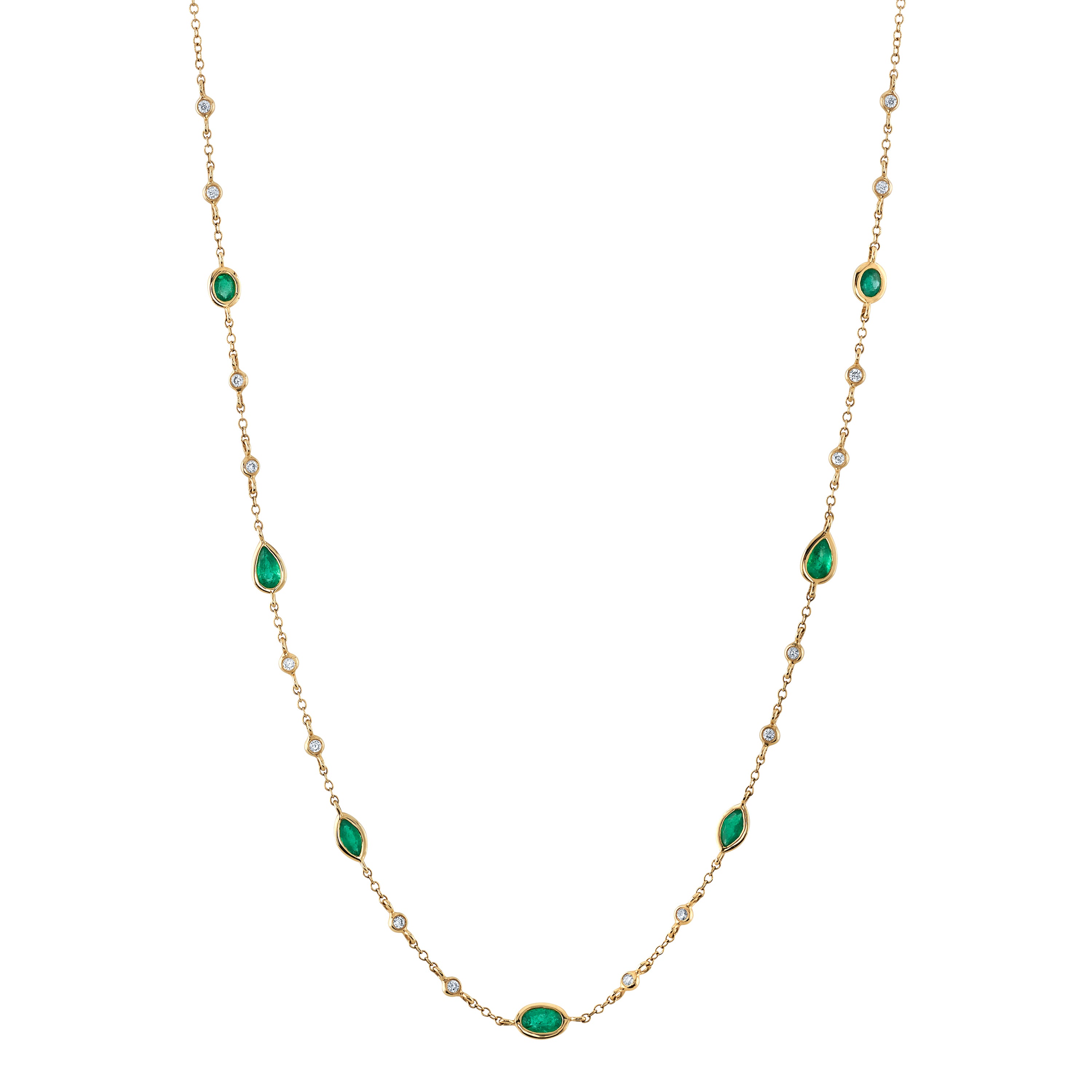 Dainty strand set with oval Emeralds and round white Diamonds, inset within the links. Pair this strand with other necklaces or wear alone.