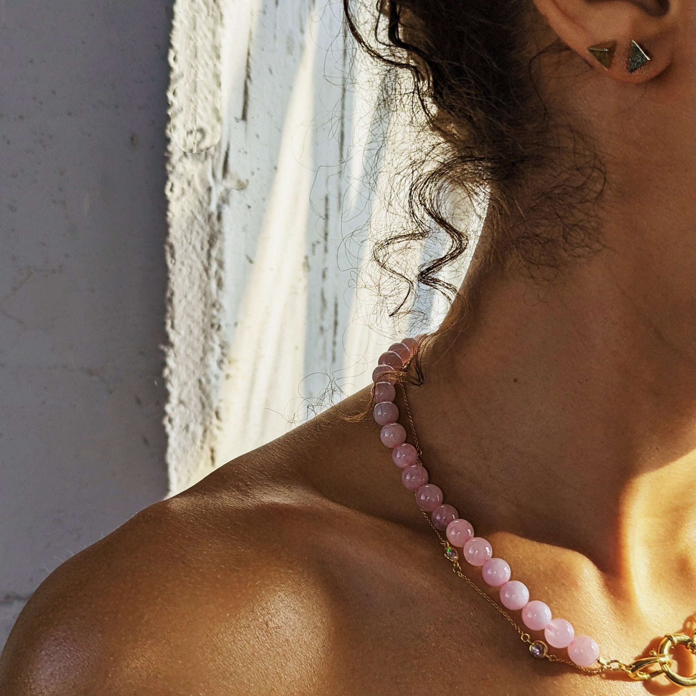 The Trilogy symbol represents Kim's family that has passed on, her grandmothers Mae Ella, Edna Mae and her cousin Chestine Cowan (Langston). The representation goes further into embracing our Past, Present, and Future, as well as the number 3. Piece is set in 14k gold (or 14k Gold plated Sterling Silver) with a 14k gold post.
