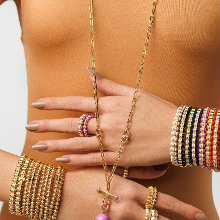 Meet Hydrogen, the epitome of gentle grace. With her calm and serene energy, she exudes a sense of tranquility and puts those around her at ease. Her unhurried approach to life is a breath of fresh air, and her strong-willed determination adds a touch of strength to her mellow demeanor. Embrace life with Hydrogen's gentle spirit. This bangle is handmade from hand-painted enamel stones, framed with 18k yellow gold and two rows of .52ct white diamonds.