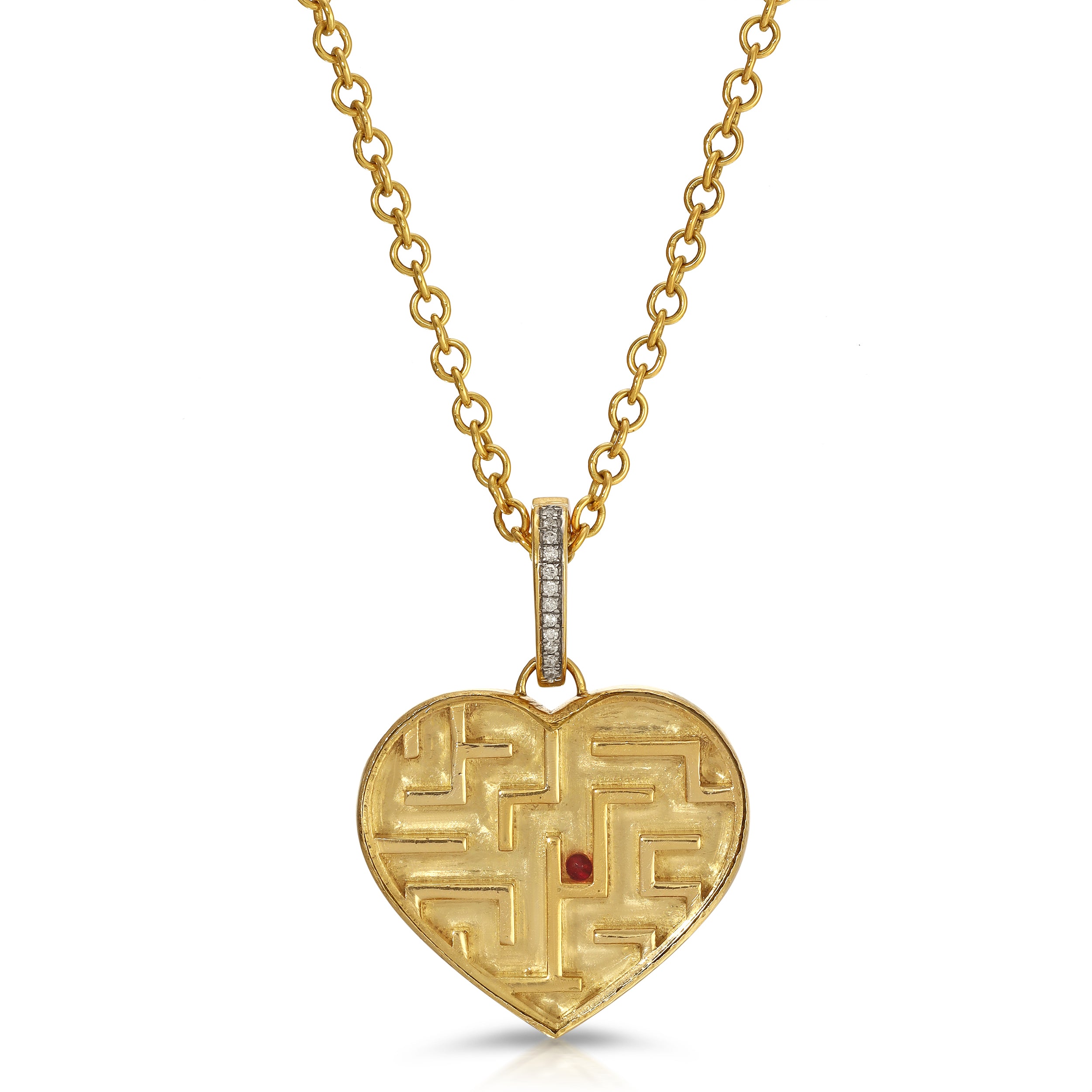 Interactive Ruby ball can move through the 18K Yellow Gold maze with a white Diamond Bale. Sold as a charm only.