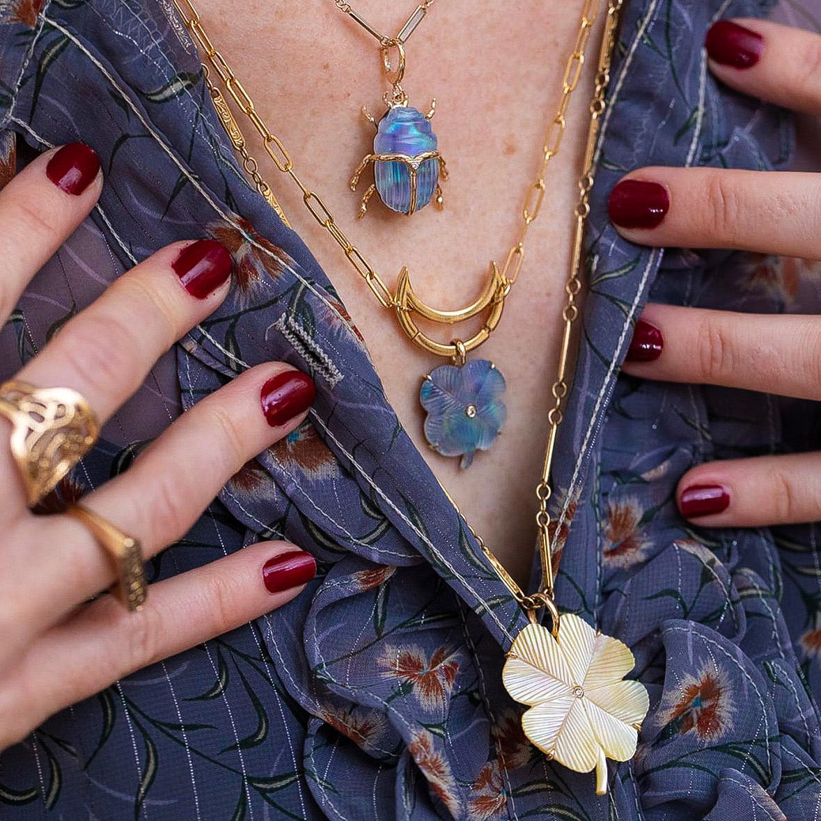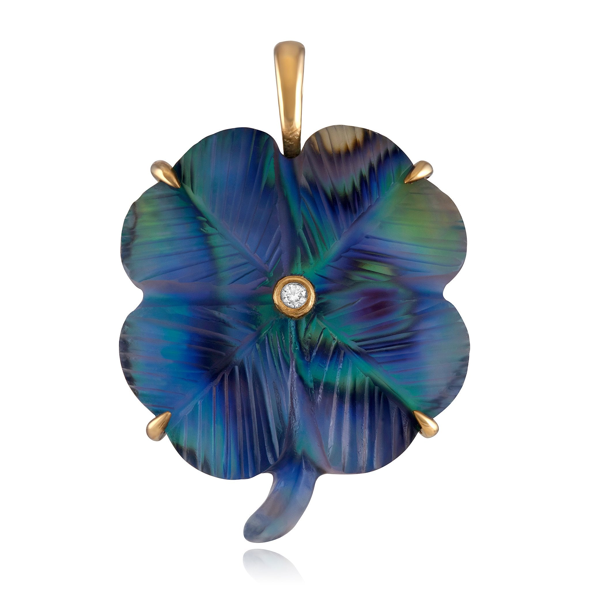Abalone has complex layers of patterns and colors in it’s nacre, so each of our clovers has an iridescent rainbow sheen creating a unique luminous glow from within. Each carving is completely unique and which changes when viewed from different angles. Charm: 30mm.
