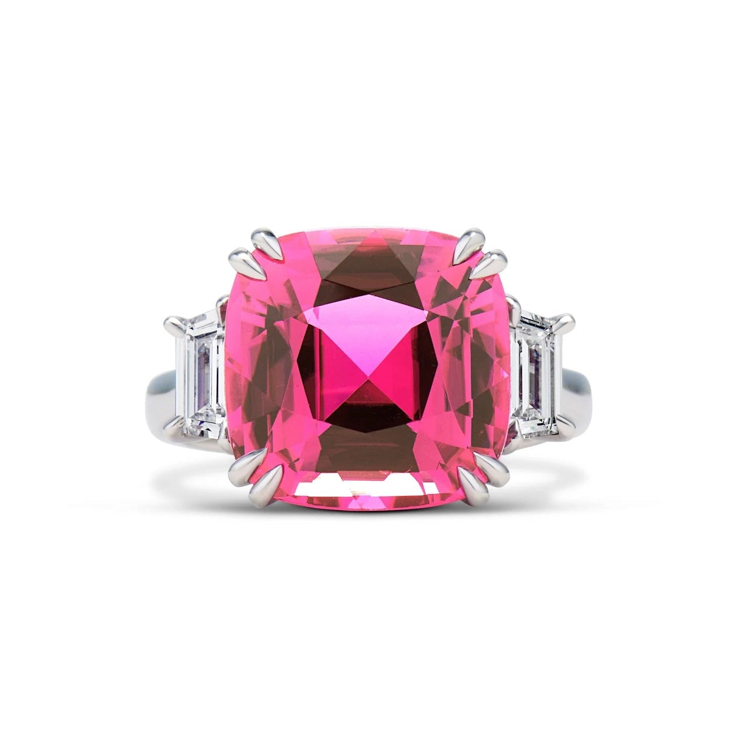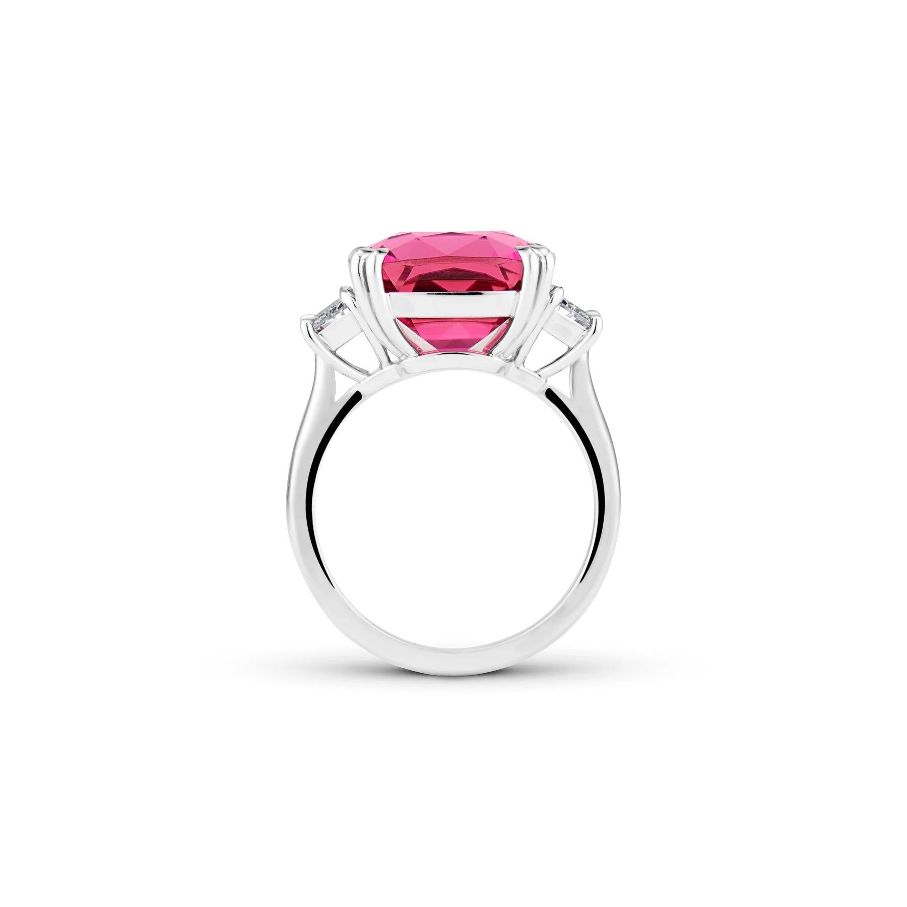 Olivia Ring, set in Platinum. Ring features a 7.7ct pink Tourmaline with 0.58ct F VS Diamonds.
