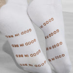 New Organic Cotton Crew Socks. Featuring sole grippers in our signature "Good In Bed" pattern. The Classic stripes complete your effortless at-home 'fit. 100% breathable Organic Cotton. One-size fits most.