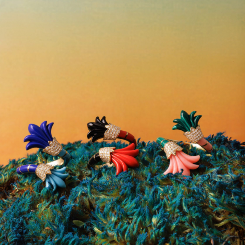 Conceptualized after a vivid dream, the collection began life as a make-believe flower. The collection seamlessly blends the beauty of bygone eras with high fashion styling of this present day. Worn with crochet on the beach, or with haute couture at night, Psychadeliah will look after you wherever your travels take you. This ring is handmade from 18k yellow Gold and 0.2ct of white diamonds.
