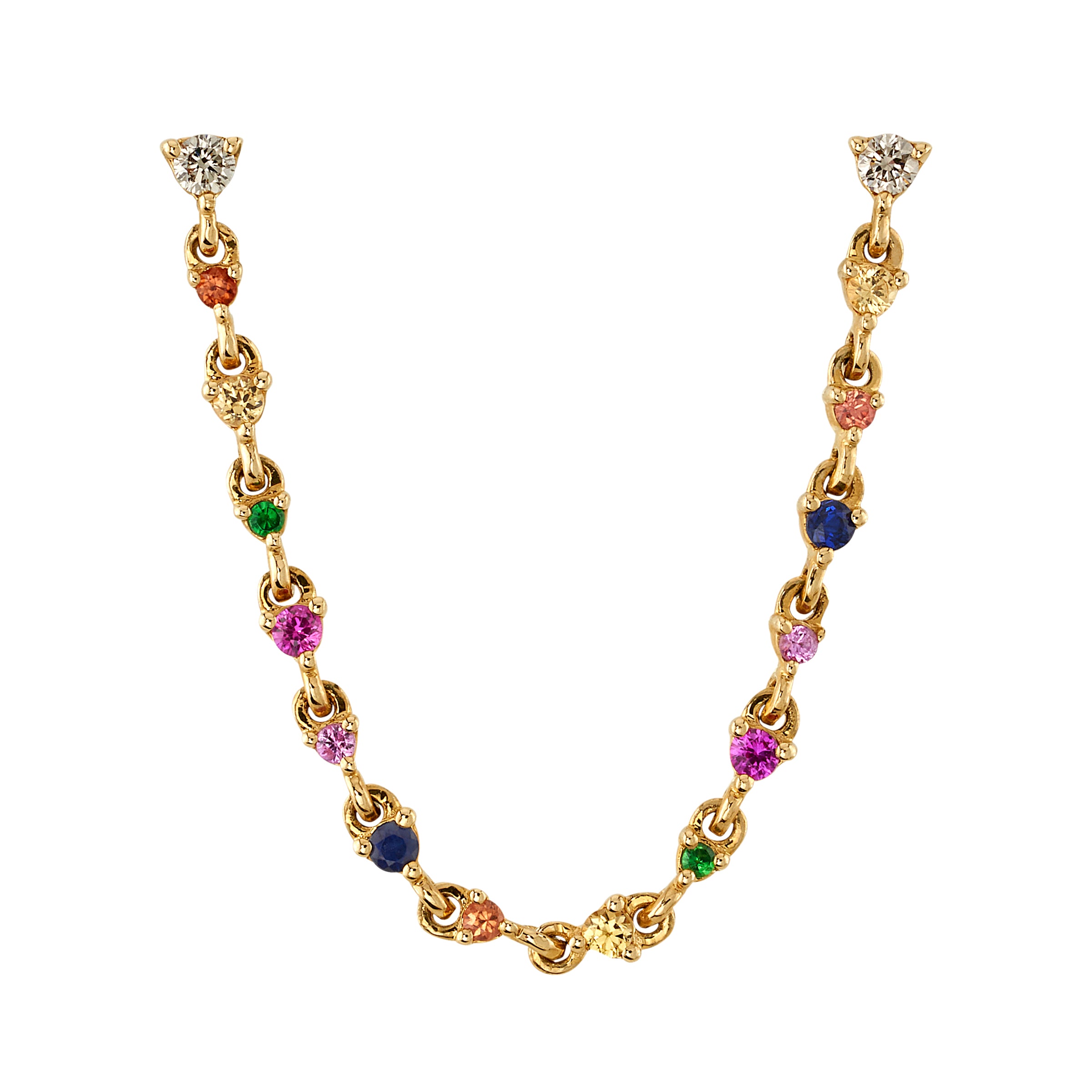 Round prong-set stones linked together. White, Orange, Yellow, Green, Purple, Pink, and Blue Sapphires. Sold as a single.