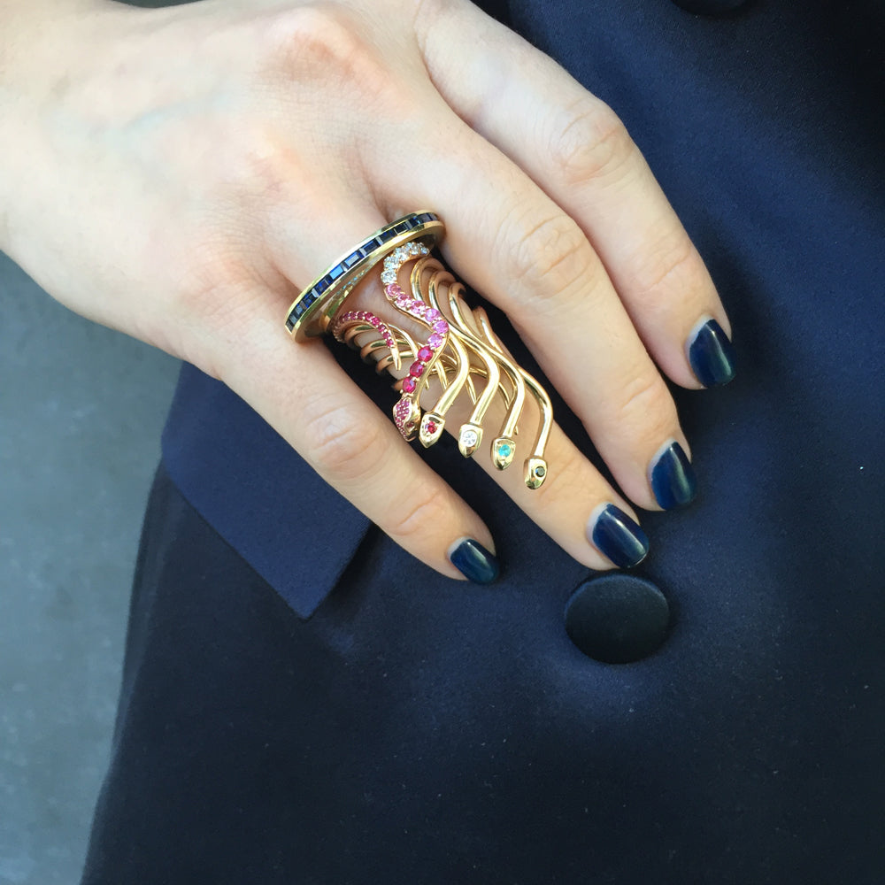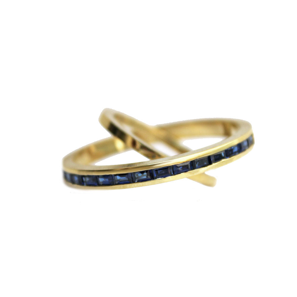 Saturn Ring with Sapphire, or Diamond, Baguettes channel set in 18k Gold.