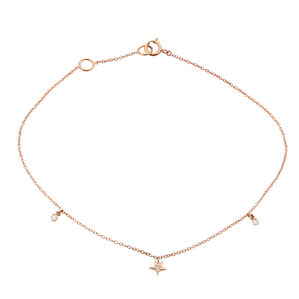 Star & Diamonds Anklet. A set of three diamonds set unto a gold star and round 1.5mm bezeled Diamonds. Adorn your ankle and walk on stars. 8" long with 1" extension. Handmade with Love in LA.