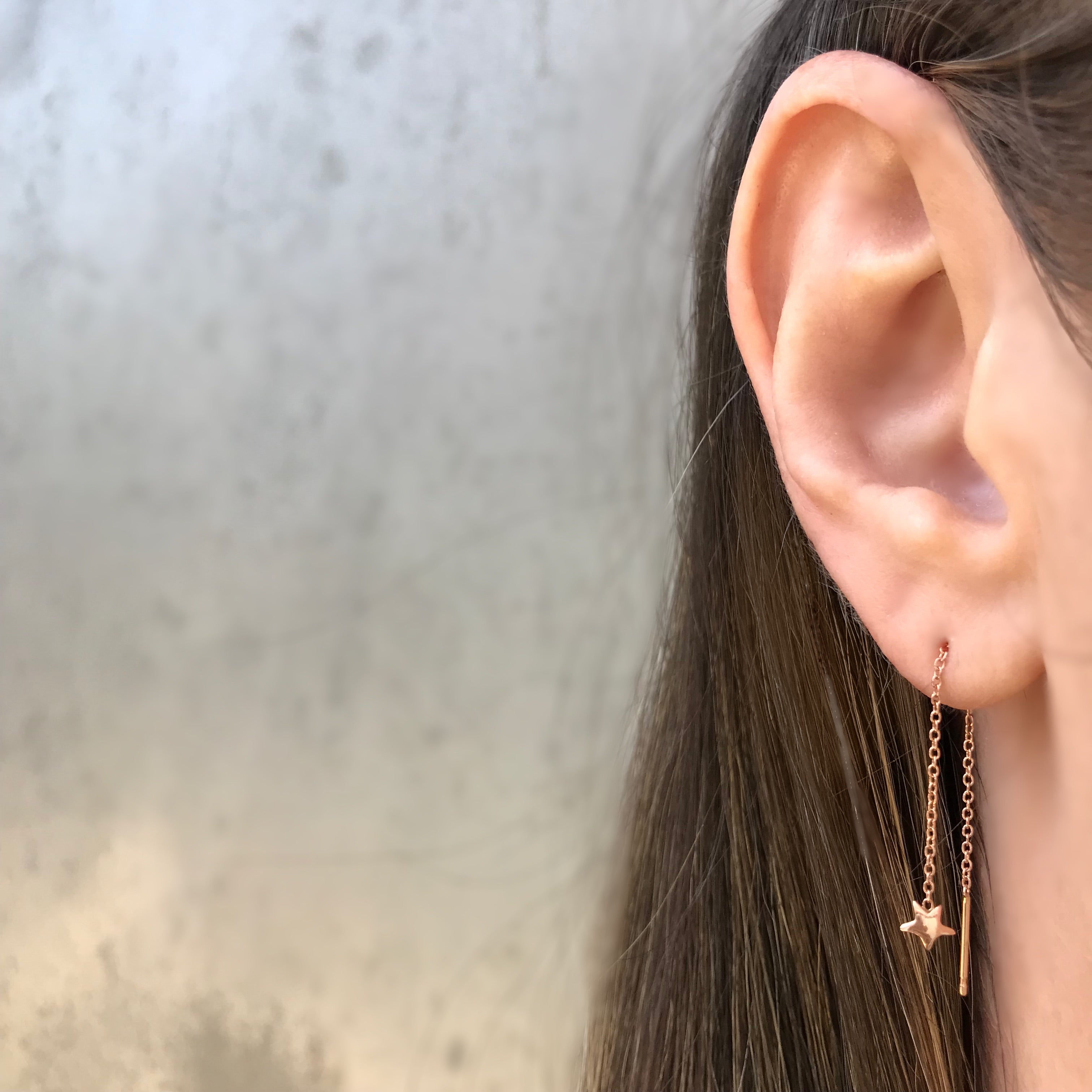 Dainty star chain thread through earring. 2.5 Inch Length.