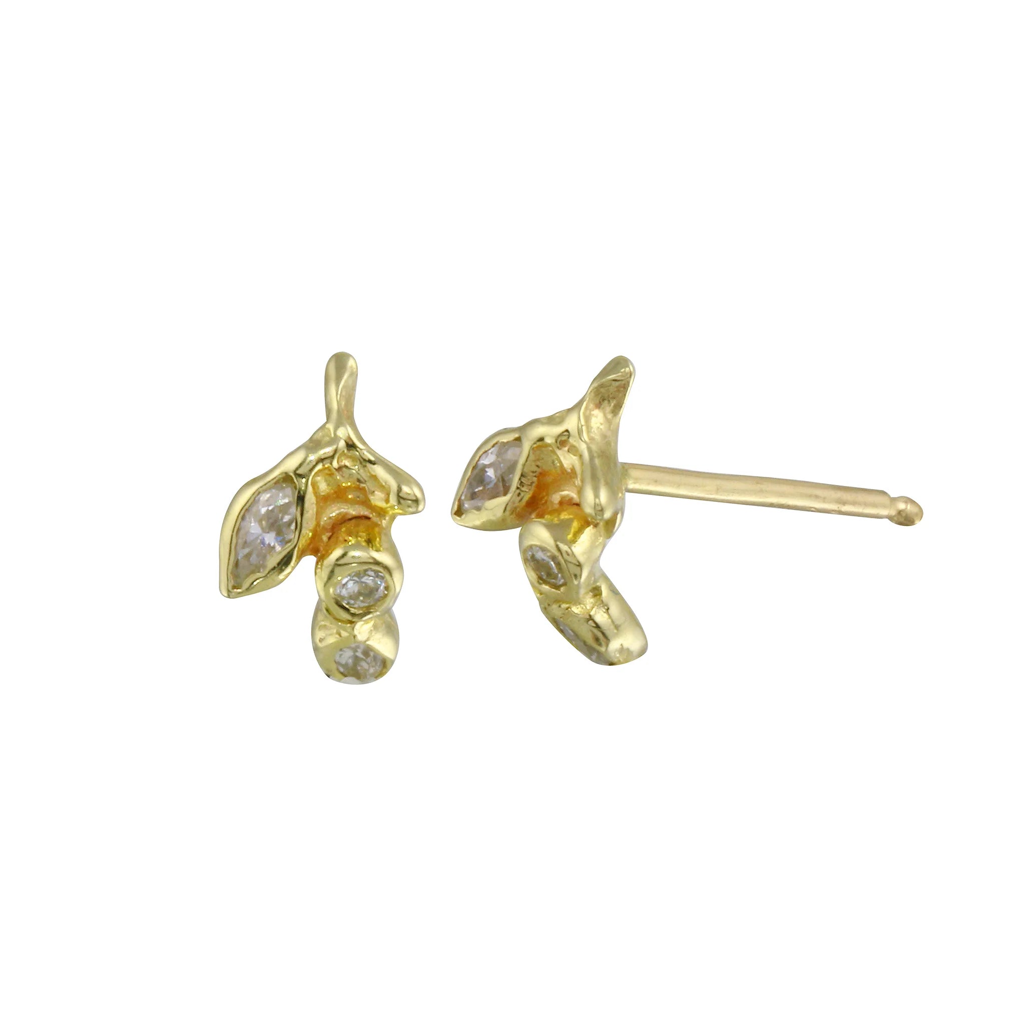 Dainty marquise and round diamonds form a stem leaf half hoop style earring. A subtle touch of nature adorn the ears.