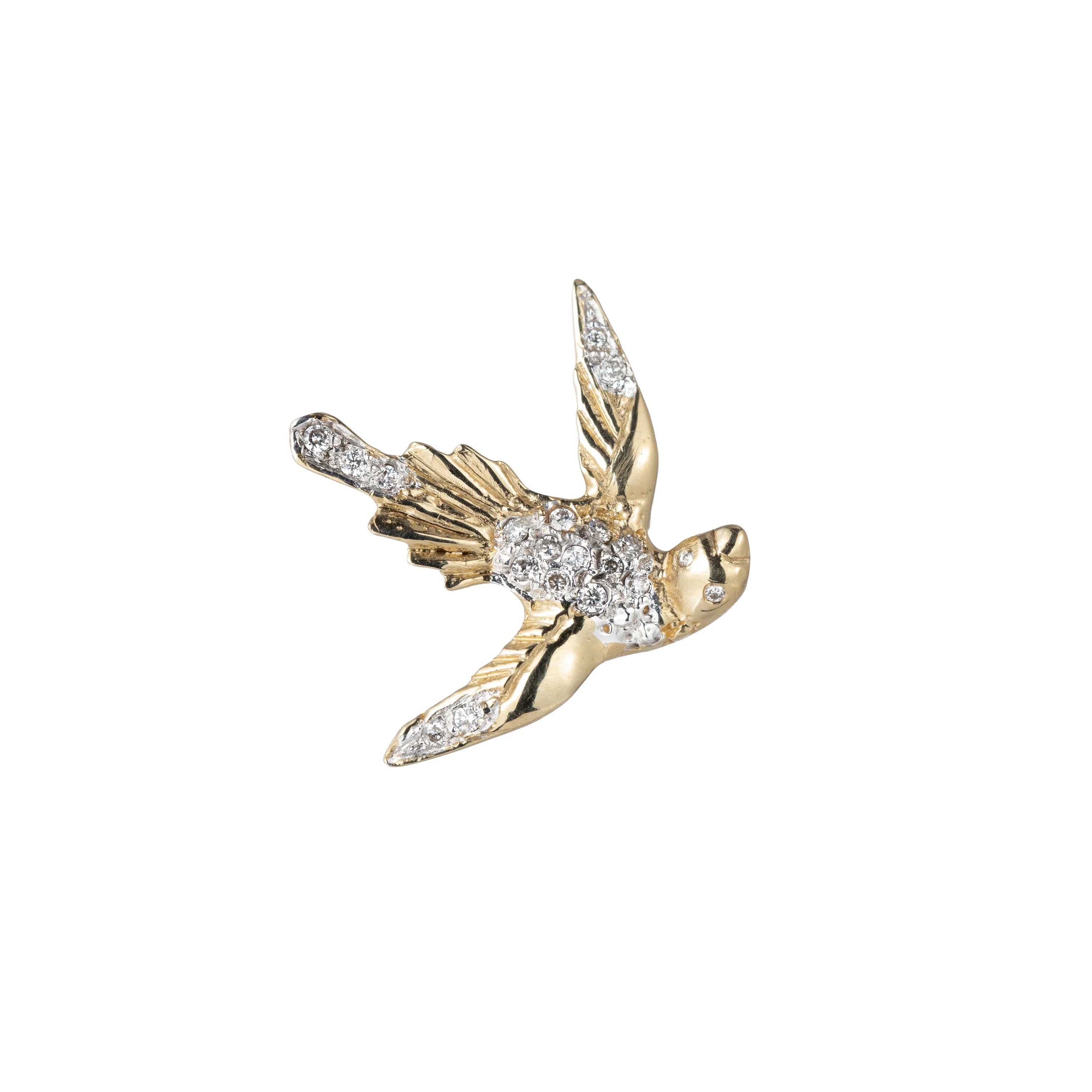 Loyal Swallow symbolizes love, peace and luck. The 2.5gram piece is set in 14k gold with Diamonds. Sold as a single, Right side. Handcrafted in Los Angeles.