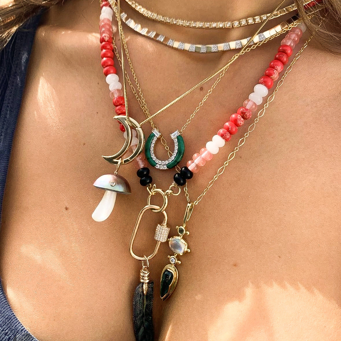 Hang your favorite tiny charm from this lock to spice up any outfit. With a pave diamond dial set in 14k Gold. Mini: 15.8mm Height. Large: 27mm Height.