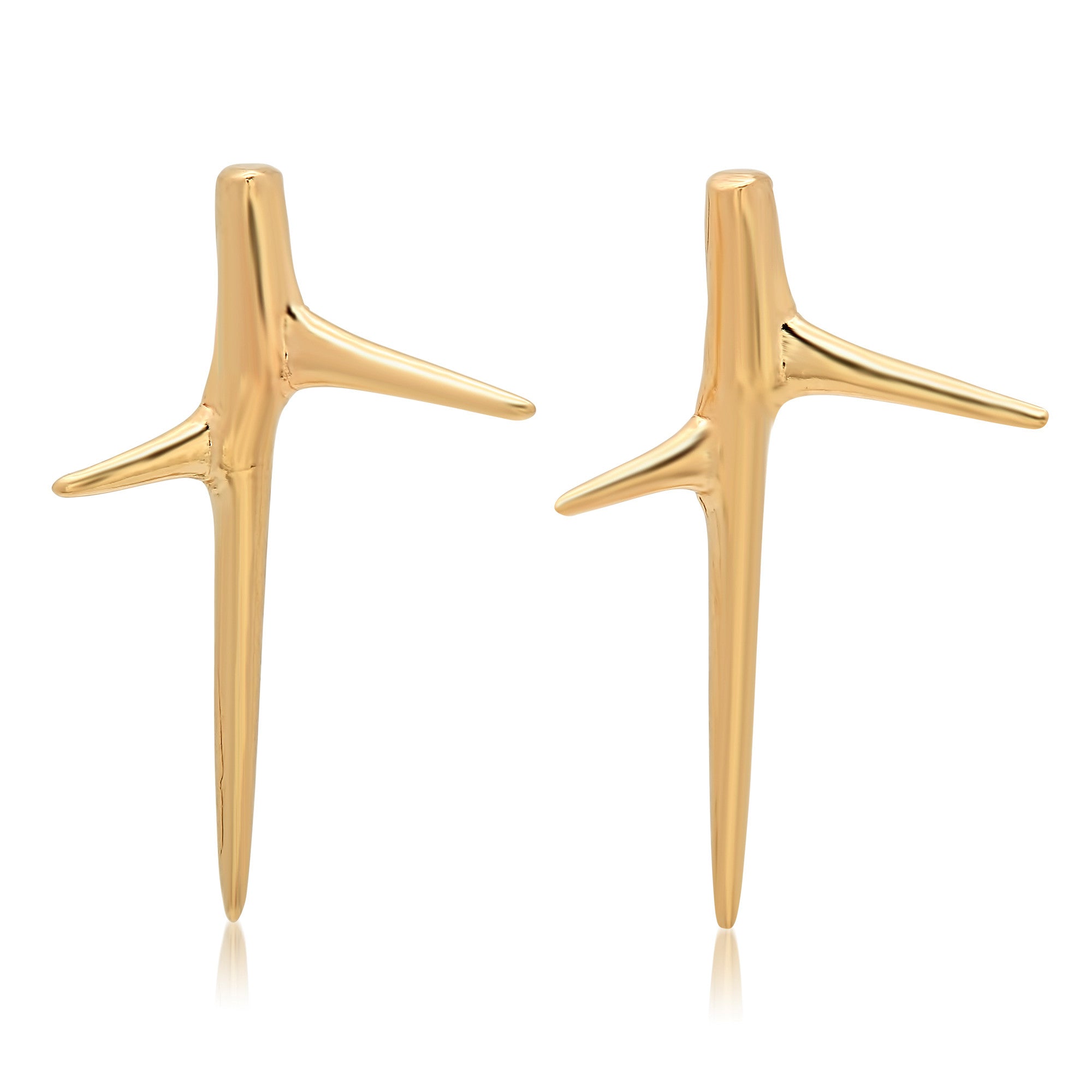 Thorns represent strength and protection. Handmade in Los Angeles, this solid gold German tree thorn pendant is available with and without diamonds. Sold as a pair. Pair perfectly with the Thorn Necklace or Horizontal Thorn Necklace. Stud: 1 inch Length.