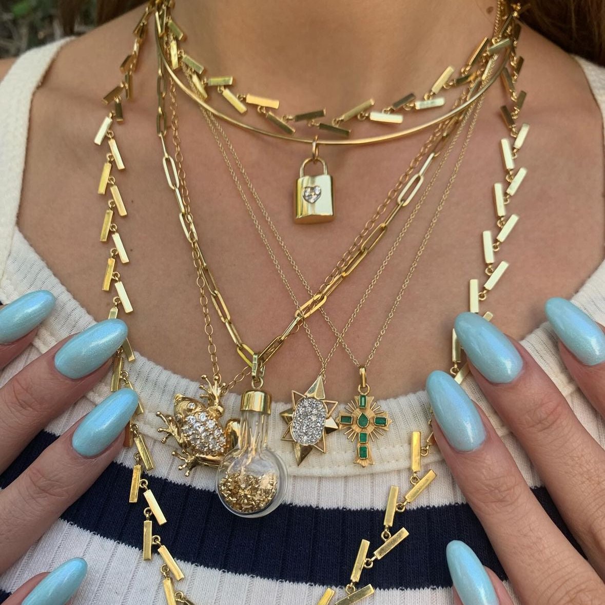 Vintage, European Time capsule "beaker" pendant with encased Gold flakes. The capsule has a 14k cap with a link to slide on to any chain.