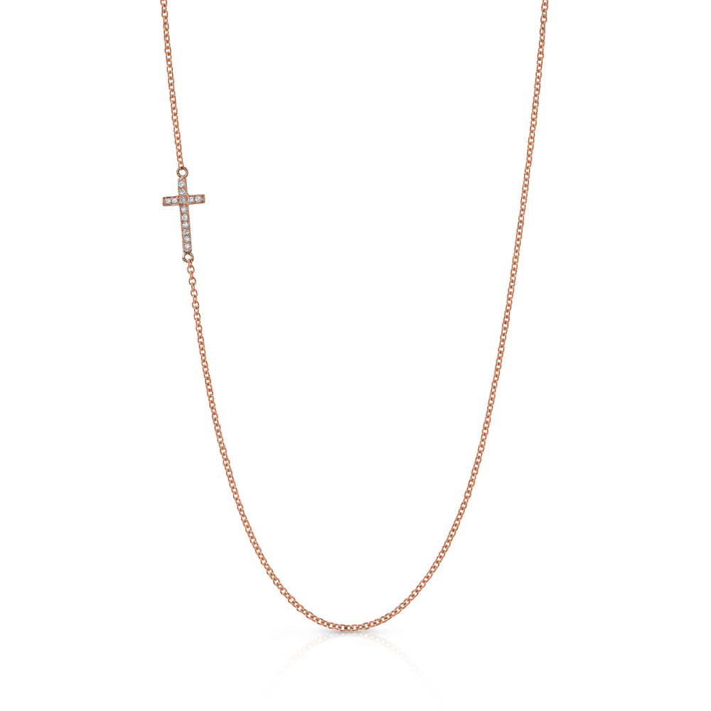 Diamond Pave Tiny Cross Necklace in 16 inches in length.