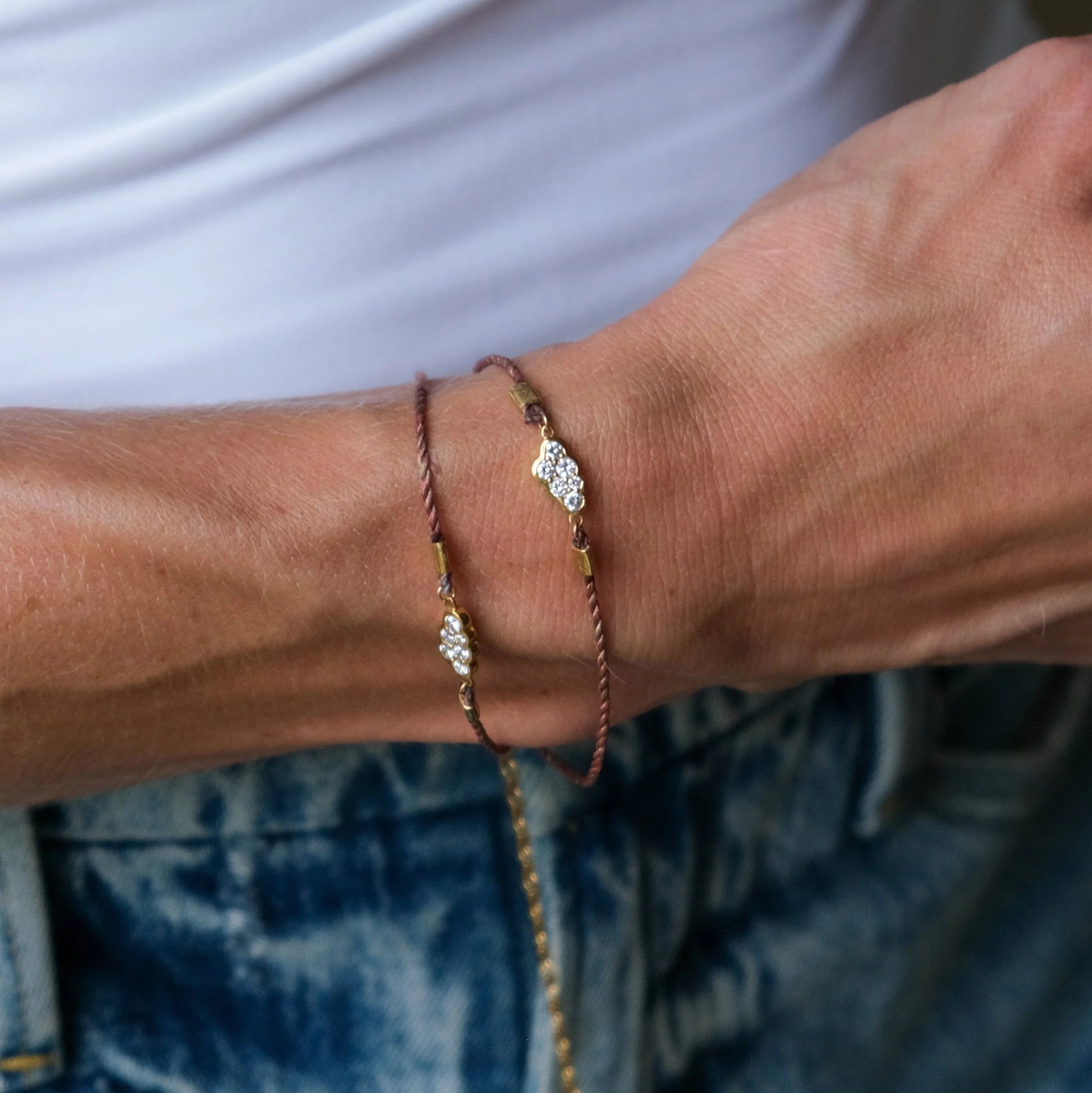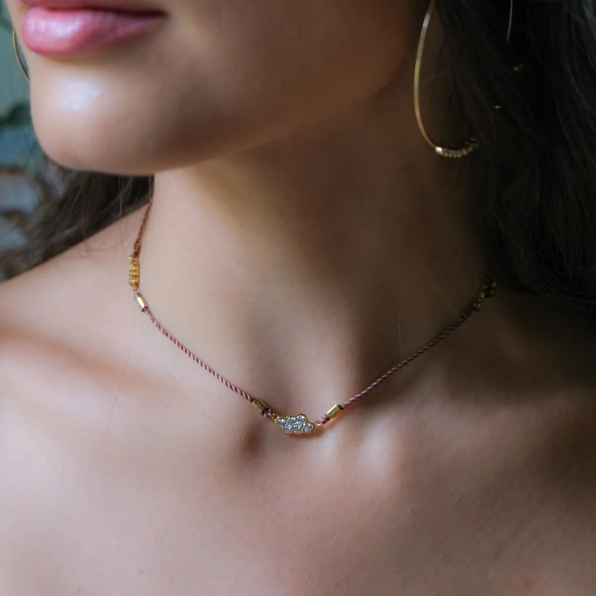 One of the good things about life is that we don't stay in the same place forever! Mirroring what the clouds do, we sometimes break apart, but make it through and gather ourselves back together: ONWARD WE GO! These three beautiful twinkling colorless diamond, 1.68ct F/G natural white, clouds are scattered along the neckline, on a fine, delicate cord that ensures they come safely back together again! May also be worn as a bracelet.