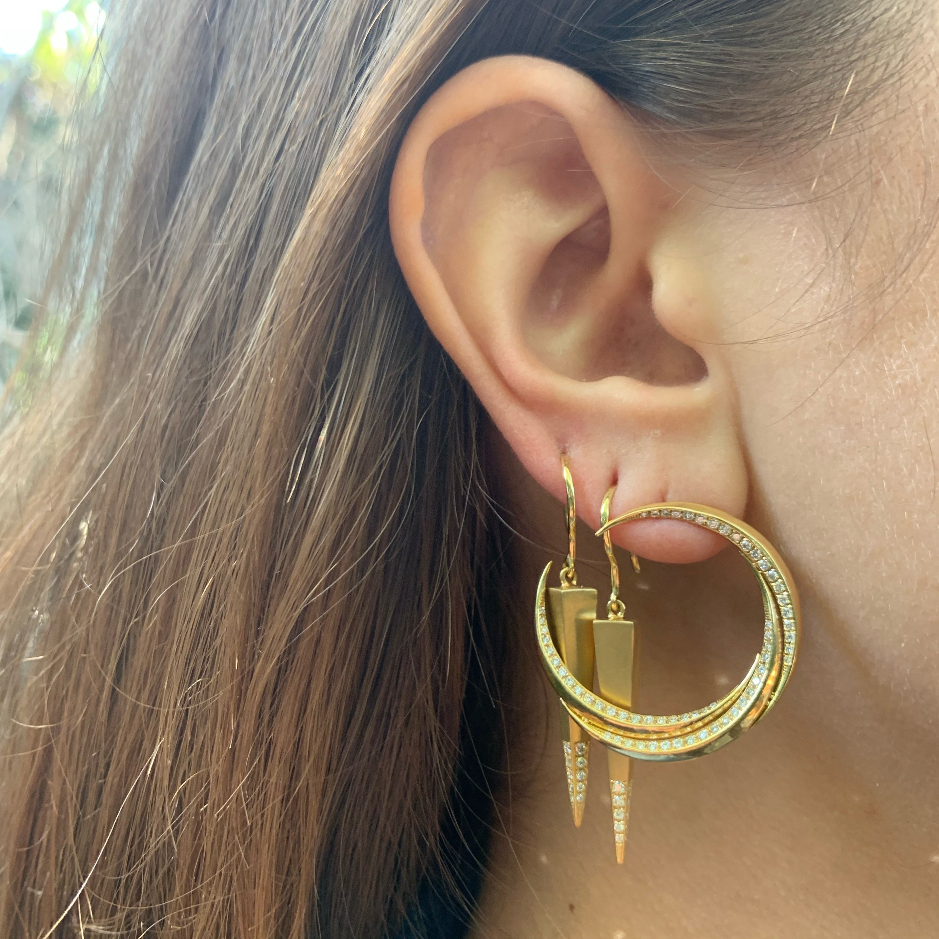 Triple Crescent Earrings. Details feature .75ct white Diamonds. Sold as a pair.