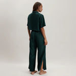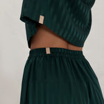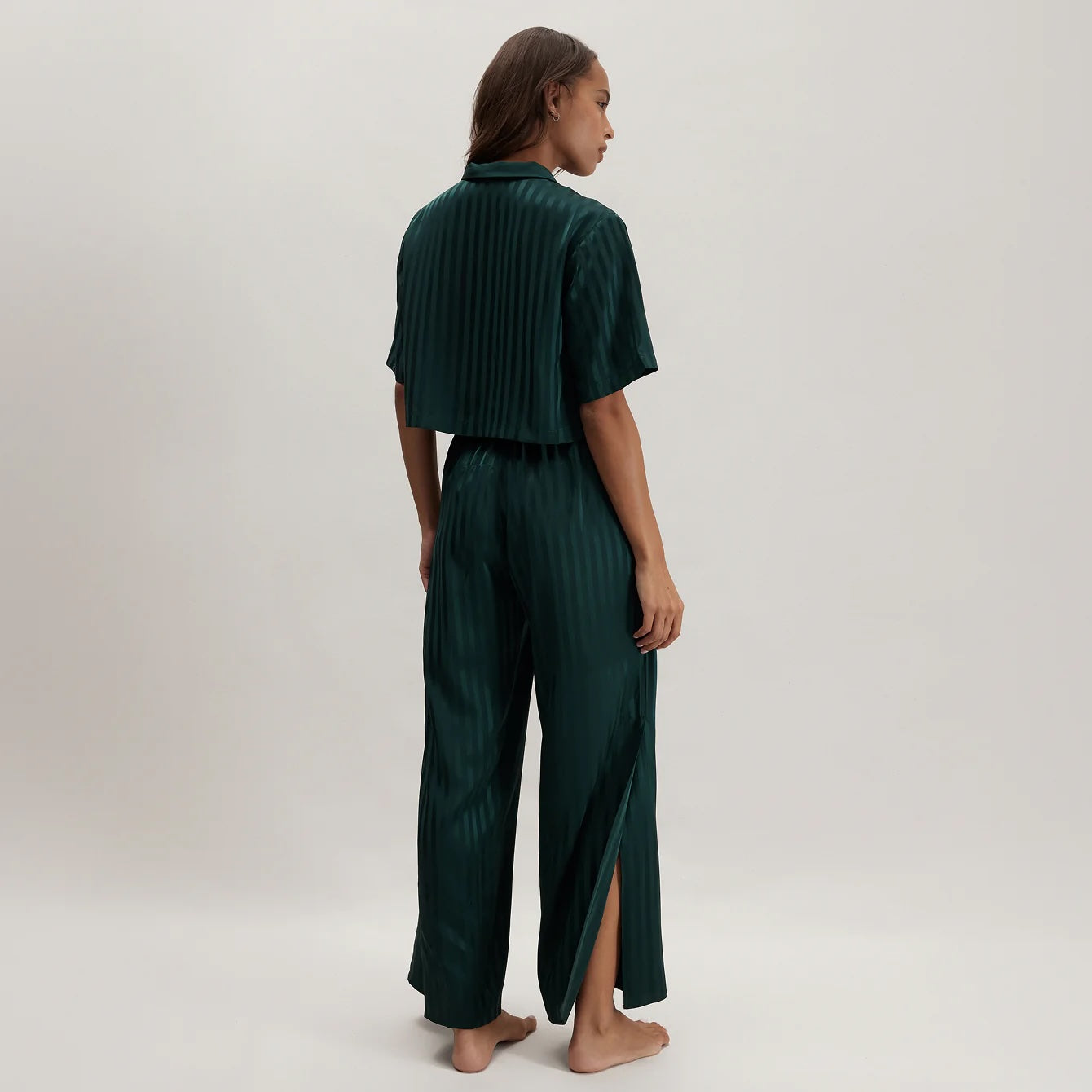 Introducing the Striped Jacquard edition of our signature Washable Silk High Rise Pant set. The cropped, elbow sleeve, button-down meets a high-rise, flat front pant designed for an effortless movement and laid-back luxury. Made from our signature 100% Washable Silk, our iconic set is lightweight, naturally thermoregulating, and velvety soft as ever. In a Dusty Cypress Jacquard color.